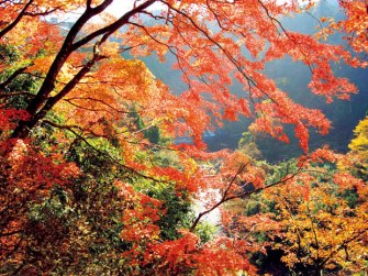 大多喜町と市原市を流れる養老川は渓谷美で知られる紅葉スポット。迫力ある「粟又の滝」や「筒森もみじ谷」など見どころがたくさんあり、雄大な秋の風景を満喫できる。