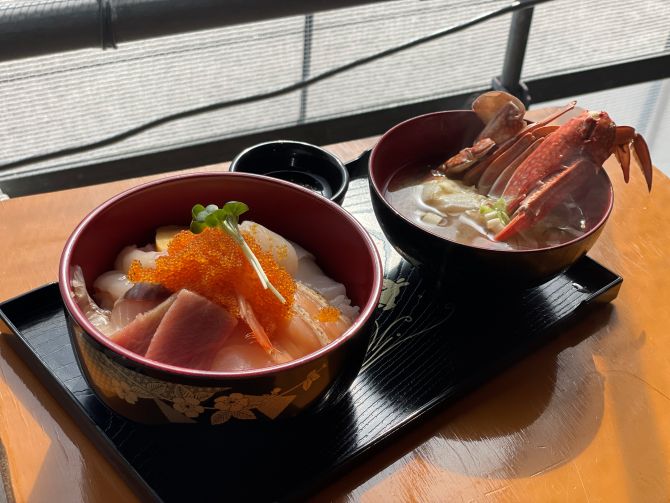 [おすすめサイドメニュー]豪華海鮮丼セット(1日20食限定)1078円、渡り蟹のパスタ660円、アヒージョ(フランスパン付き)825円