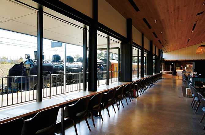 「Da Monde」の店内。レストランの目の前が駅のホーム。煙を上げて走るSLの迫力に感動!
