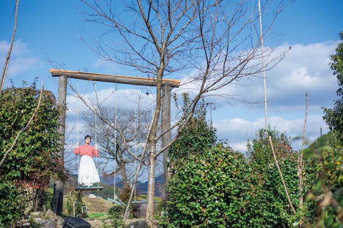 18基のブランコ、ターザンロープ、秘密基地のようなツリーハウスに吊橋など、遊具が点在。雄大な自然の中にありどこでも壮大でキレイな写真が撮れる。大自然に溶け込み、童心に返って思いっきり遊べば最高の笑顔に!