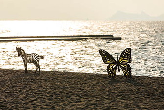 錦江湾を望む神川ビーチに、約10体の楽しい影絵が出現!おすすめタイムは夕暮れ時。海がきらきらと夕陽に照らされ、幻想的な雰囲気に。友達とポーズをキメて撮影しよう!