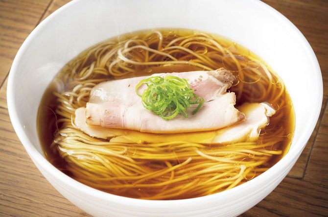 焼きあご、サンマやサバ、昆布など選りすぐりの魚介を使用したスープは、香ばしく品があり力強い味わい。