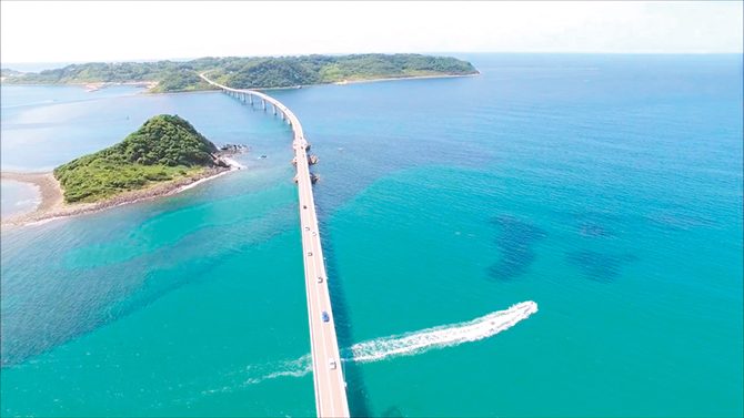 海と橋の美しいロケーションにいきなりテンションMAX。ランチでもマリンレジャーでも温泉でも海絶景を楽しんで、夏を満喫して!