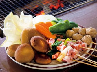 原木栽培のしいたけ狩りが楽しめるほか、屋根付きの会場で採れたてしいたけ、焼き鳥、つくねなどの炭火バーベキューを楽しむことができる。主役はやっぱり巨大で肉厚なしいたけ。鮮度と品質でしいたけの味はこんなに違うのかと驚くこと間違いなし!