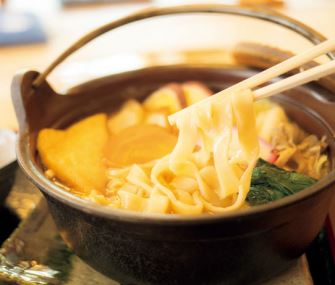 [名物グルメ]冬のオススメは、平たいモチモチの麺とたっぷりの野菜が入った「おっきりこみ」