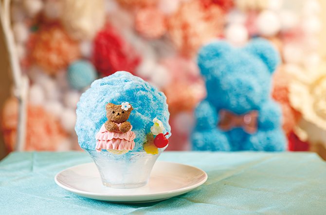 扉を開けると、そこはクマちゃんグッズにあふれたラブリーな店内。2020年より始めたかき氷が話題を呼び、人気メニューのひとつになった。