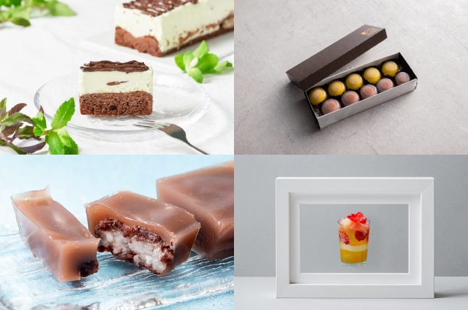清涼感たっぷりのチョコミント味のケーキのほか、ツルンとした食感の水まんじゅうで包んだショコラも登場。夏らしいカラフルなグラスデザートもありますよ。手土産にもおすすめな、ひんやりスイーツの詳しい内容をチェックしていきましょう♪