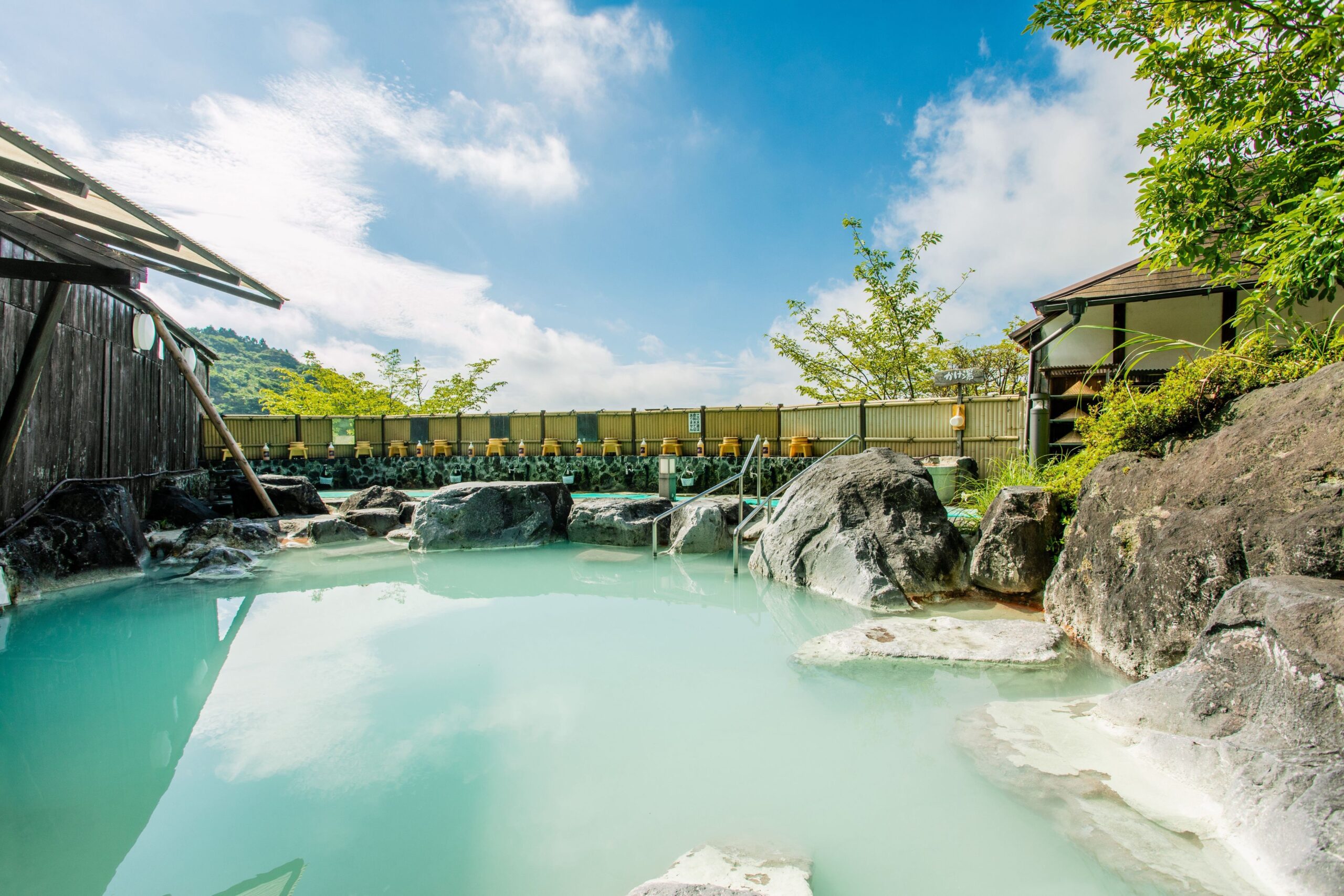 乳白色の硫黄泉は、余分な皮脂や汚れを落とすというお肌にも嬉しい湯。湯の花小屋が並ぶ明礬風景と共に楽しめればこれ、至福。