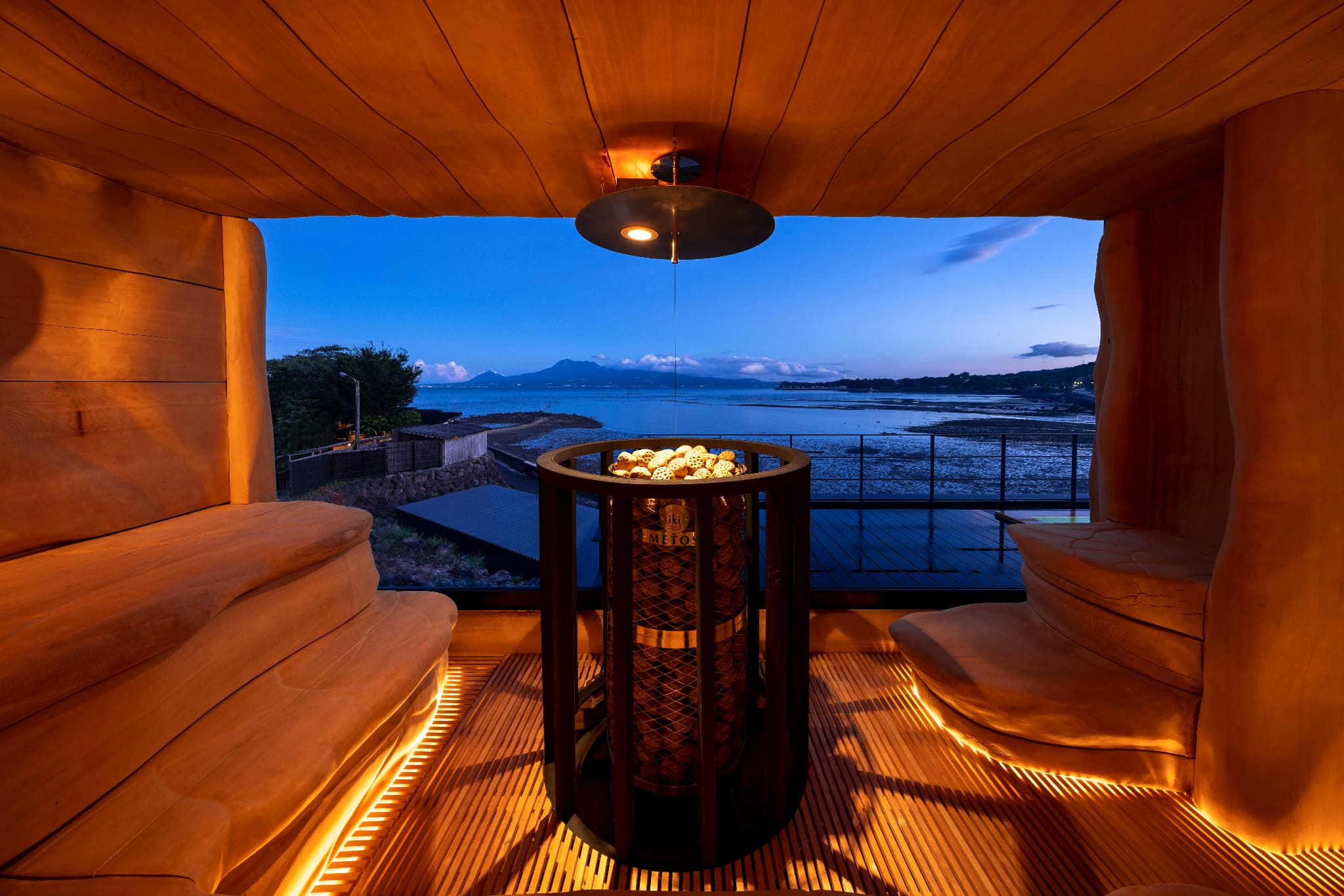 「ひとが本来もつ、健全な心身を取り戻す空間」を追求した、フルオーシャンビューの施設。大浴場、2種類の特徴あるサウナ、そして立ったまま楽しめるこだわりの水風呂で、心身を解きほぐしリフレッシュ。目の前に広がる有明海の静かな潮の満ち引きを眺め、微かに感じる月の引力とともにゆったりと寛ぐことができる。