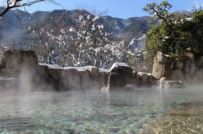 11月中旬~紅葉露天、12月~2月の間に数回大雪による雪見露天を楽しめる。名湯・下呂温泉のお湯が楽しめるのも嬉しい限り。