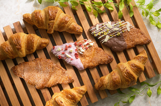 通常のクロワッサンはもちろん、進化系クロワッサンが豊富にあるのが特徴。2024年8月に新登場した3種類の『クルンジ』のほか、丸いフォルムで中にクリームの詰まった『ニューヨークロール』(399円)にも注目です。