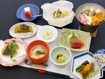 | 旬菜会席料理と郷土料理・自家源泉かけ流しの湯を堪能。 |