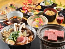 【錦秋の味覚】旬の味覚”松茸”と”信州和牛鍋”を盛り込んだ創作懐石を味わう。 |