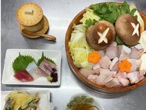 天然本クエ鍋、地元産の食材にこだわった会席料理をお部屋でごゆっくりお召し上がりください。