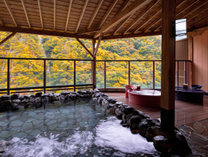 大川渓谷を望む露天風呂で至福の時間。旬鮮食材使用の料理自慢の宿