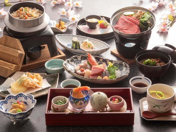 14,800円〜 29,600円〜 【お部屋食】河内鴨と黒毛和牛を味わう 石焼×すきしゃぶ『春の特選肉会席』- ポイント2%