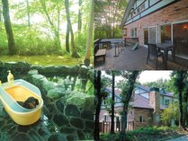 | ペンション一棟貸し、大型貸別荘、2つの温泉露天風呂、ペットも可 |