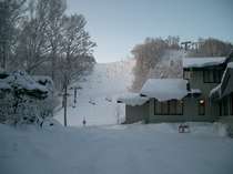 | 当館よりゲレンデまで徒歩4分ほど、天然温泉と手料理が自慢の宿. |