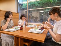 朝食も夕食も素敵な外の景色を見ながらのバイキングでした。ただ食事内容は品揃えに偏りがあったのでアレコレ楽しむ感じではなかったのと、岐阜らしい食べ物が少なかったです。お味も普通でしたが、過度な期待をしなければ満足できるレベルだと思います。