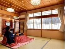 重厚な歴史に新しい感覚をプラス!進化しながら角甚は創業350年。2021年2023年に客室6室・大浴場リニューアル。全室トイレ、冷暖房完備。貸切温泉無料も嬉しいポイント