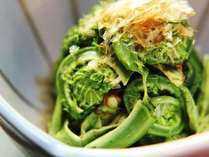 地物の絶品山菜料理と岩魚料理。