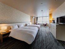【ドリンクインクルーシブが人気】モダンで落ち着きのある客室。静かなひとときを求めるお客様にぴったりな空間。自然と調和した穏やかな雰囲気の中で、源泉かけ流しの湯と旬の料理をご堪能ください