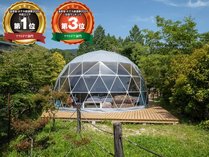 星空が美しい自然に囲まれたグランピング施設。隣接施設は天然温泉や温水プール、屋内キッズパーク完備!家族旅行やグループ等初めてのアウトドアに最適!豪華BBQセット&自然を楽しむ朝食プランもご用意♪