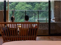 和洋の魅力が融合した特色ある客室。全室に露天風呂と内風呂を完備し、渓谷美と磊々峡の清流に囲まれた静かな空間で贅沢なひとときをお楽しみいただけます。贅を尽くした空間で安らぐ時をお過ごしください。