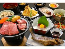 【A4等級】飛騨牛石焼ステーキ70gを追加!!飛騨牛料理2品の飛騨牛すきしゃぶ会席<夕食はお部屋食>