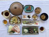 【期間限定】【ネット限定】お料理グレードアップ子持ち鮎の塩焼き+土佐黒牛陶板焼き付き花籠膳