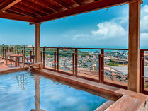 たなびく鉄輪の湯けむりを一望。かけ流しの展望露天風呂が大人気!