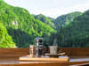 こだわりの料理と景色が自慢の宿。大きな窓から望む耶馬渓の絶景。