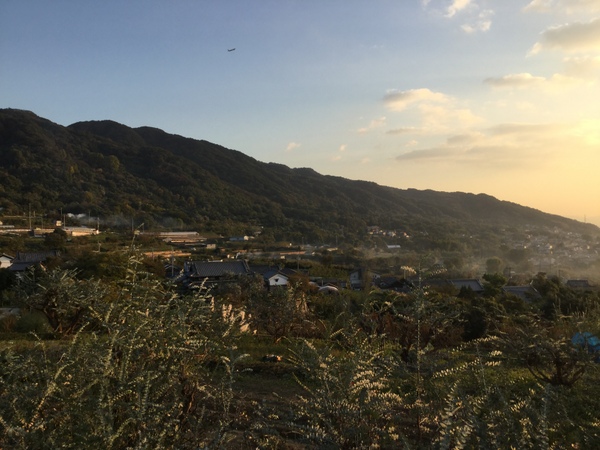 【通夜島有姫龍神】の位置から高安山方面の眺め。 住所:大阪府八尾市神立4丁目
