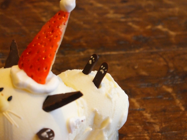 niki nikiさんでクリスマスモチーフの生八つ橋を2つお取り置き予約してから、既に開店していたマールブランシュカフェへ。 クリスマスの小物ケーキがどれも可愛くて目移りしちゃうけど、とりあえずアンクル・スノーマンを。 上からのライトのせいで帽子の影が出来て可愛さ半減してますが…(泣)