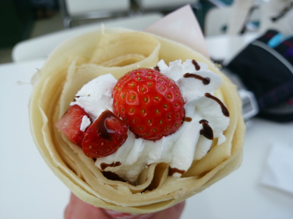 おやつにマリオンクレープ。 とちおとめチョコクリーム、リフト券に付いてるクーポンでホイップ20%増しです。