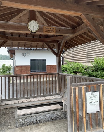 山紫苑さんのすぐ前に、バス停があります。足湯がありますよ。いよいよ白兎神社へ移動です。