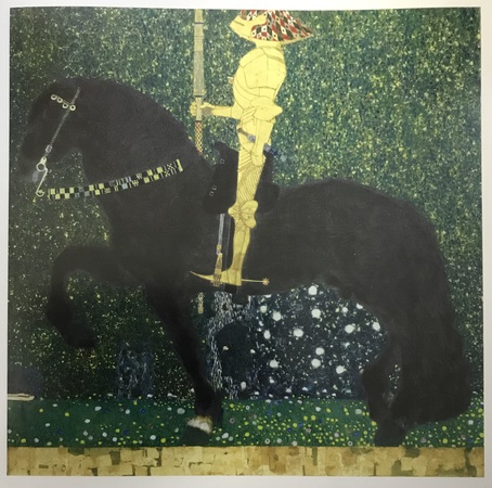 「人生は戦いなり《黄金の騎士》」(1903年作・図録) ウィーン大学の天井画を巡る論争などを経験したクリムトの偽らざる心情の表れか…。まさに人生は戦いです。