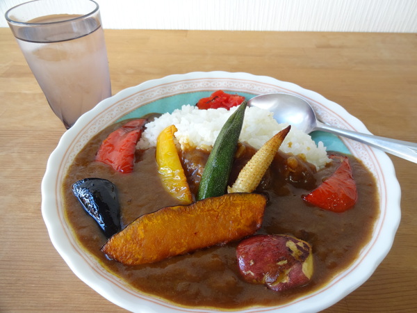 島でのランチ。ほとんど食べる所がなくてやっと見つけたこちらで女木島野菜カレーを注文。野菜がゴロゴロでおいしい。