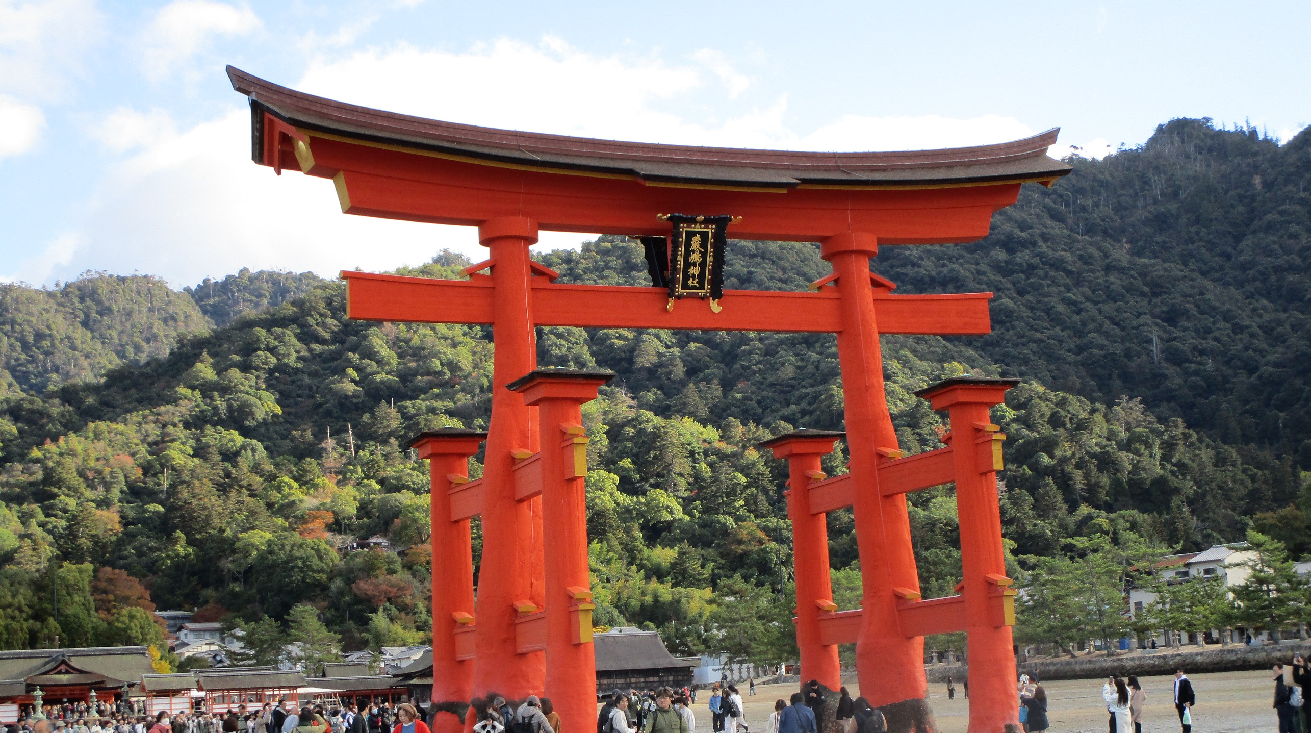 清盛神社へ寄り、早めの昼食へ。 あなご丼とおそばを食べましたが、正直なところ、観光地値段でたいして美味しくはなかった。その後、厳島神社宝物館を見学。潮が引いたら大鳥居まで歩いて行きたかったので、15時半ころが干潮になることを確認して弥山に向かうことに。 宝物館を出ると雨は上がっていました