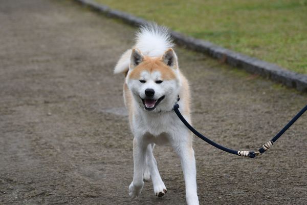 さて、秋田犬と飼い主さんのお昼の休憩も終わったと思いますので、秋田犬に会いに行きましょう!行ってみると秋田犬とスタッフさんが軽快に走っていました。