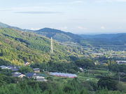 蓑毛ベリー園 中央下に見えるビニールハウスが農園です。