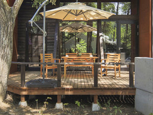・【2階吊り橋タイプ/テラス】木漏れ日が差し込むテラスではBBQもお愉しみいただけます