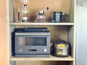 ・【離れ吊り橋付きタイプ/キッチン】調理家電、コーヒーミル等取り揃えています。暮らすようなご滞在を