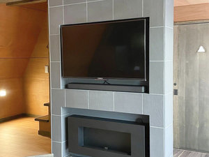 ・【離れ吊り橋付きタイプ】スタイリッシュな埋め込み式のテレビ。スピーカーバー付きで映画鑑賞も◎