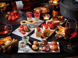 苺スイーツの数々をはじめ、お食事にもこだわったフリーフロー(飲み放題)付きのディナーです。