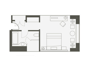 【客室の間取り】1キング プレミアム(シャワーブース付) 38平米、ベッド1台、バス・トイレ有り