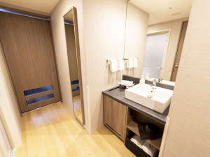 広さと機能性が調和した客室。ベッドルームと水まわりの仕切り扉がプライベート感を高めます。- バス、トイレ、洗面台 各独立