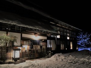 雪国の風情の古屋敷 移築再生のため見かけによらず断熱が効いており館内はぬくぬく