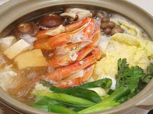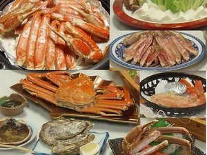 夕食は、かに料理で。かにすき鍋・茹でガニ・焼きガニ・カニ刺し・かに天ぷら・甲羅焼き(かにみそ)・酢の物など。ズワイガニを二杯半使用しています。茹でガニのお持ち帰りは、可能です。夕食時間は、18時から20時30分までです。朝食は、焼き魚・味付け海苔・温泉卵・湯豆腐・小鉢・サラダ・味噌汁など。朝食時間は、8時から9時までです。ゆったりとお過ごし下さい。