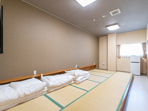 い草の香りがふんわり漂う、畳敷きのお部屋です。ゴロンと体を広げてくつろげます♪おひとり様でのご利用から大人数でのグループ合宿にも◎。長期滞在される方に人気のお部屋!